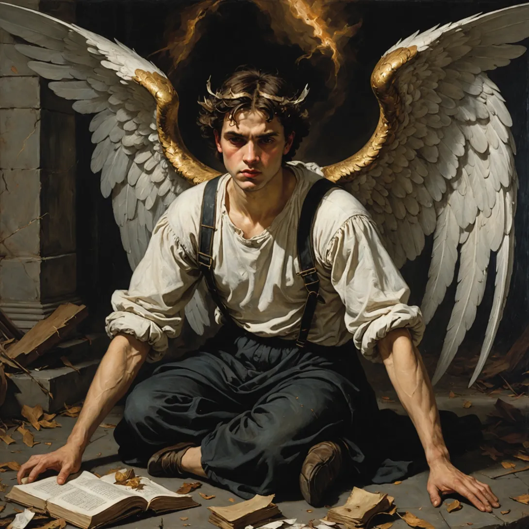 Падший ангел — это образ, часто используемый в художественных произведениях, символизирующий падение с высот духовного или морального совершенства. В картинах этот мотив отражает сложные темы борьбы, искупления и трагедии.