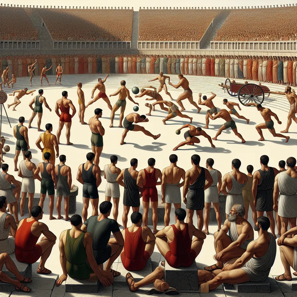 Древняя Греция, с её богатым культурным наследием и стремлением к совершенству, подарила миру множество традиций, которые продолжают вдохновлять нас и сегодня. Одной из таких традиций стали Олимпийские игры, которые зародились в VIII веке до нашей эры и стали символом стремления к физическому и духовному совершенству. Эти игры, проводимые в честь Зевса в Олимпии, стали не только спортивным событием, но и важным культурным явлением, объединяющим греков из разных полисов.Соревнования, которые проводились в рамках древних Олимпийских игр, были разнообразны и включали в себя как индивидуальные, так и командные виды спорта. Одним из первых и самых престижных соревнований был бег на один стадий, что примерно равнялось 192 метрам. Этот вид спорта символизировал скорость и выносливость, и победа в нём считалась высшей честью для атлета. Постепенно к бегу добавлялись и другие дисциплины, такие как диаулос — бег на два стадия, и долихос — длинная дистанция, которая могла достигать 24 стадий.Переходя от бега к более сложным видам спорта, нельзя не упомянуть о пентатлоне, который включал в себя пять дисциплин: бег, прыжки в длину, метание диска, метание копья и борьбу. Пентатлон требовал от участников не только физической силы, но и ловкости, координации и стратегического мышления. Этот вид спорта стал прообразом современного пятиборья и продолжает вдохновлять спортсменов на достижение гармонии тела и духа.Борьба, как отдельная дисциплина, также занимала важное место в Олимпийских играх. Она требовала от участников не только физической силы, но и тактического мастерства. Борьба в древней Греции была не просто спортом, но и искусством, которое воспитывало воина и гражданина. Ещё одним видом спорта, который зародился в древней Греции, был панкратион — сочетание борьбы и кулачного боя. Этот вид спорта, считавшийся одним из самых сложных и опасных, требовал от участников максимальной концентрации и силы воли.Конные соревнования также были неотъемлемой частью Олимпийских игр. Гонки на колесницах и верховая езда привлекали внимание зрителей и были символом богатства и статуса. Эти соревнования демонстрировали не только мастерство наездников, но и красоту и грацию лошадей, которые считались священными животными.Таким образом, Олимпийские игры в древней Греции стали не только спортивным событием, но и важным культурным феноменом, который объединял людей и вдохновлял их на достижение новых высот. Эти соревнования, зародившиеся тысячи лет назад, продолжают жить и развиваться, сохраняя дух состязательности и стремление к совершенству. Они напоминают нам о том, что спорт — это не только физическая активность, но и путь к самопознанию и гармонии с окружающим миром. Вдохновляясь примером древних греков, мы продолжаем стремиться к новым достижениям, сохраняя традиции и создавая новые истории побед и триумфов.